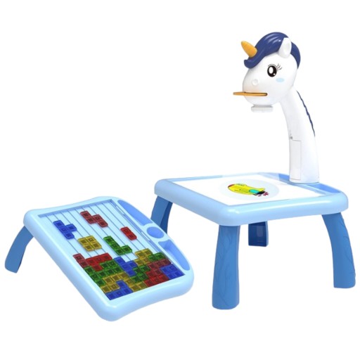Projektor do rysowania stolik jednorożec tetris niebieski