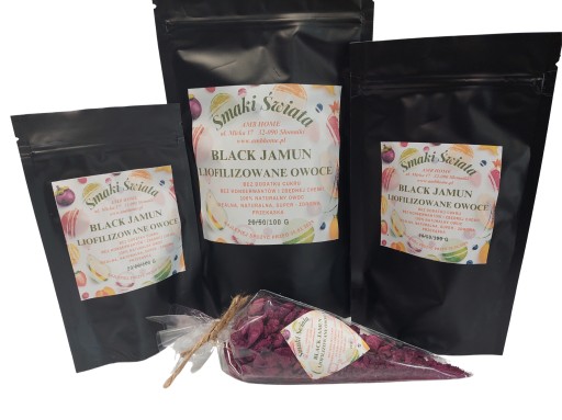 - 20g, 50g, 100g Black Jamun zapakowany w czarny doypack