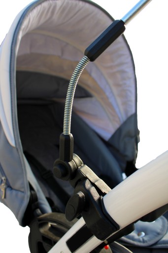 - łatwy montaż - wypiętą część uchwytu przykręcamy do wózka, następnie wpinamy parasolkę