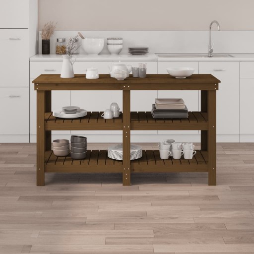 STOLIK ROBOCZY MIODOWY BRĄZ 142,5X50X80CM DREWNO SOSNOWE