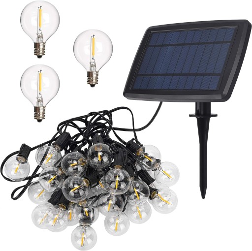 Solarna lampa łańcuchowa zewnętrzna G40 ma 7,6 m długości, 25 sztuk żarówek kulowych.Światła zasilane są energią słoneczną.Żarówki LED o wysokiej wydajności oszczędzają ponad 90% energii w porównaniu z żarówkami.Słoneczne zewnętrzne oświetlenie łańcuchowe automatycznie włącza się w nocy i wyłącza w ciągu dnia.Ładowanie USB może być uzupełnieniem, gdy w ciągu dnia nie ma wystarczającej ilości światła słonecznego.