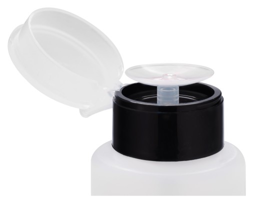 Dozownik/buteleczka o pojemności 150 ml, z pompką, do różnych płynów kosmetycznych. Dzięki niemu w sposób łatwy i higieniczny nawilżysz wacik preparatem, bez niepotrzebnej utraty płynu.