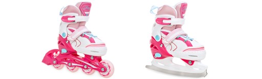 Model 2w1 ma do zaoferowania wymienną płozę łyżwową za pomocą której rolki w prosty i szybki sposób można zmienić w łyżwy.