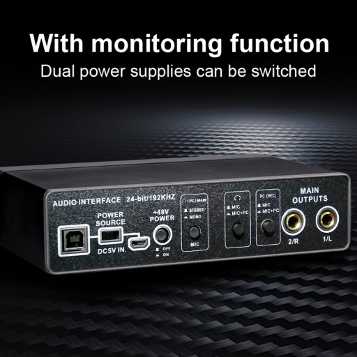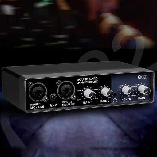 Przedwzmacniacz mikrofonowy 2x2, z potężną funkcją i kompatybilnością oraz szybkim interfejsem USB2.0 i rozdzielczością audio 24 Bit/192 Khz, może zapewnić doskonałą jakość nagrywania, bardzo odpowiedni do nagrywania mikrofonu, gitary, basu, komputerów i innego sprzętu.