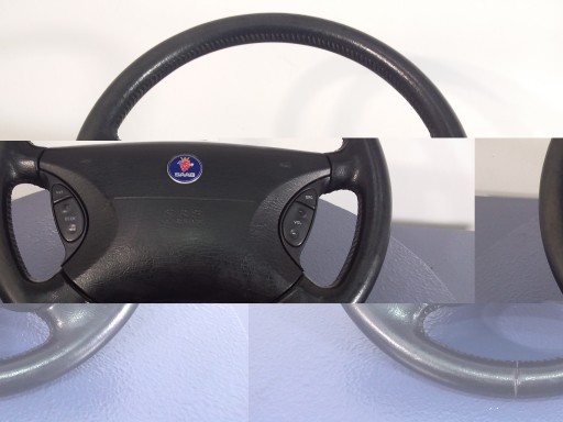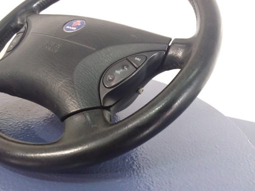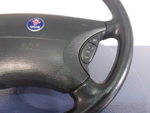 Opis: widoczne ślady użytkowania, wytarta -jakość B && SAAB 9-5 95 I KIEROWNICA SKÓRZANA Z PODUSZKA