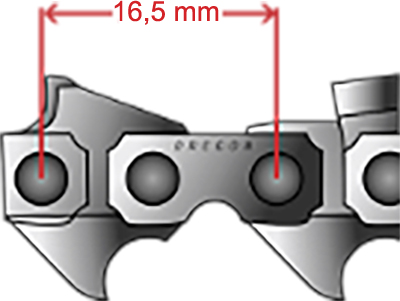 Ważne! W przypadku używanych łańcuchów tnących, odległość ta może się zwiększyć ze względu na zużycie łańcucha i jego właściwości rozciągające.