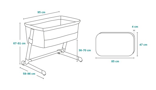 ✔ regulacja wysuwu nóg pozwala dostosować łóżeczko do łóżka rodzica bez względu na wysokość stelaża.