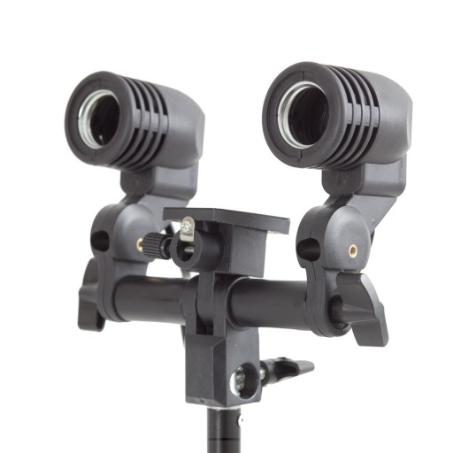 Podwójna oprawa, przeznaczona jest do żarówek światła stałego i kompaktowych lamp błyskowych z gwintem E27. Stanowi ona element łączący wszystkie komponenty zestawu. Istnieje możliwość zamocowania na niej parasolki oświetleniowej (fotograficznej). Oprawka zaprojektowana jest do montażu na statywach oświetleniowych. Zaletą jest lekkie i solidne tworzywo, co zapewnia jej wytrzymałość przez długi czas. Oprawa w porównaniu z innymi modelami posiada niewielkie wymiary i jest bardzo wygodna w regulacji. Głowica jest ruchoma w zakresie +80°/-80°. Przewód dwużyłowy ma długość 1,4m.
