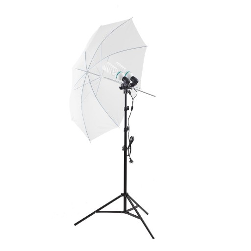 Studyjna lampa światła ciągłego zawiera dwie świetlówki fotograficzne 65W (moc świetlna 325W) oraz parasolkę dyfuzyjną 84 cm. Lampa ta daje jasne, naturalne światło o temperaturze 5500K, dzięki czemu nie dochodzi do przekłamań kolorystycznych w trakcie fotografowania. Parasolka dyfuzyjna zmiękcza kontrasty i wygładza cienie. Idealnie nadaje się do fotografii portretowej, modowej i produktowej. Może służyć również jako dodatkowa lampa podczas filmowania.