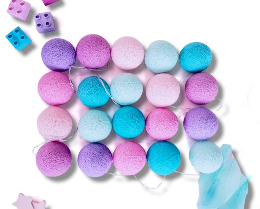 - Wybrany zestaw kolorystyczny możemy wykonać w wariantach: 10, 20, 30, 40 kul. W tym celu zapraszamy na naszą aukcję: Kolory do wyboru / Lampki Cotton Balls - KOTONEK dekoracje i ozdoby do pokoju dziecka