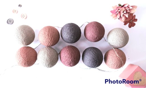 - Kule do lampek cotton balls wykonywane są ręcznie, z naturalnych - bawełnianych nici, co nadaje im niepowtarzalny charakter. Staranność wykonania, wysoka jakość użytych materiałów, oraz gęsty splot nici sprawiają, że nasze kule nie potrzebują wewnątrz plastikowego szkieletu. Zastosowana przez nas technologia produkcji sprawia, że nasze lampki cotton balls są o wiele bardziej estetyczne niż ich tańsze odpowiedniki.