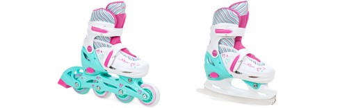 Model 2w1 ma do zaoferowania wymienną płozę łyżwową za pomocą której rolki w prosty i szybki sposób można zmienić w łyżwy.