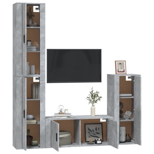 Zestaw 4 szafek telewizyjnych, szarość betonu