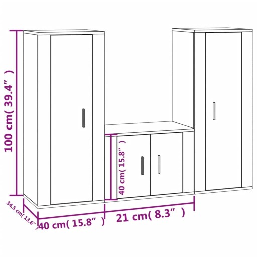 Zestaw 3szafek telewizyjnych, dąb sonoma