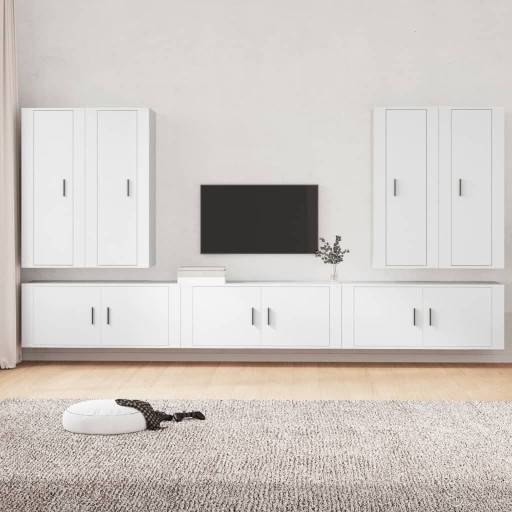 Zestaw 7 szafek TV, Biały, materiał drewnopochodny