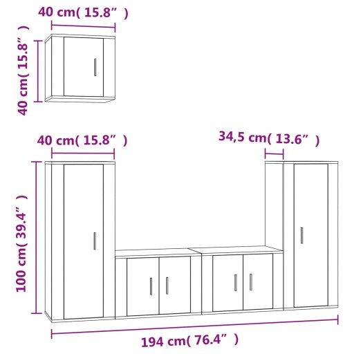 - 2 x szafka TV: 40 x 34,5 x 100 cm (szer. x gł. x wys.)
