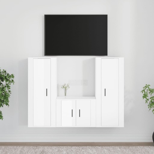 3-częściowy zestaw szafek telewizyjnych, biały z połyskiem