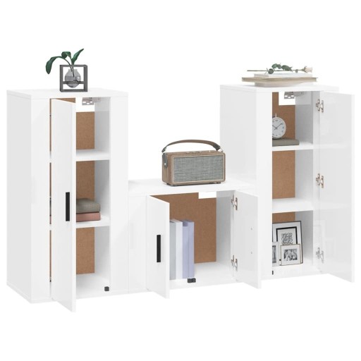 3-częściowy zestaw szafek telewizyjnych, biały z połyskiem