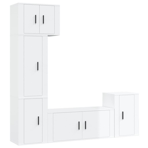 5-częściowy zestaw szafek telewizyjnych, biały z połyskiem