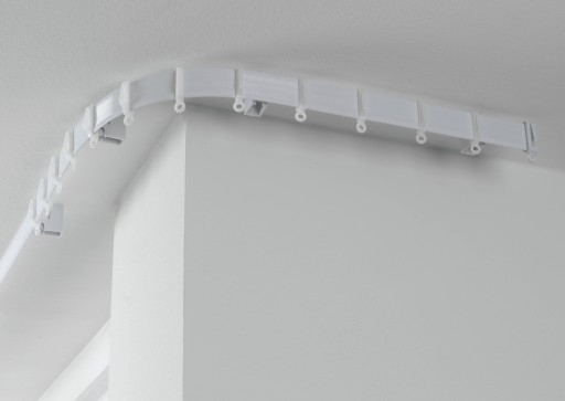 Szyna Flexrod ma możliwość plastycznego wyginania się, dzięki czemu dopasujemy ją do kształtu pomieszczenia. Bez problemu dotniemy ją także do wymaganej długości, używając zwykłej piłki do metalu.