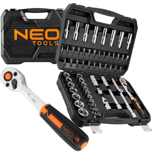 Komplet wysokiej jakości kluczy, nasadek i innych narzędzi niezbędnych w każdym warsztacie. Narzędzia NEO produkowane są w oparciu o najnowsze technologie i nowoczesne materiały. Na komplet NEO udzielana jest 25-letnia gwarancja