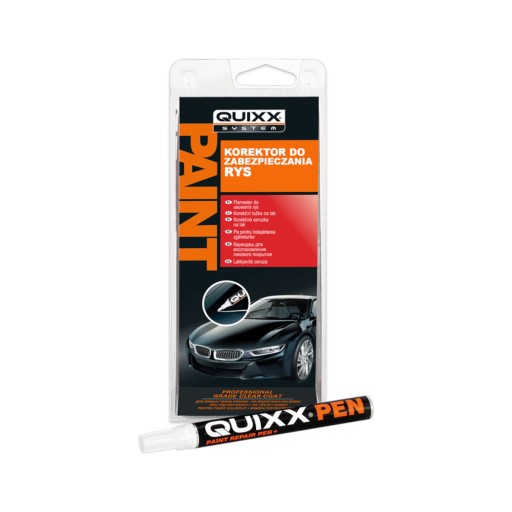 Głębokie rysy na lakierze, z którymi nie radzą sobie lekkościerne pasty polerskie można teraz zamaskować korektorem do zabezpieczania rys Quixx. Korektor tworzy zapobiegającą utlenianiu powłokę nawet w bardzo głębokich zadrapaniach sięgających podkładu.