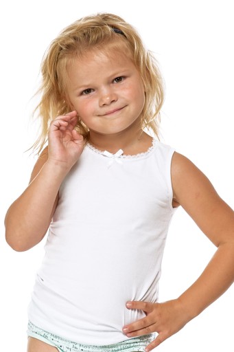 - Klasyczna podkoszulka na grubych ramiączkach to niezbędnik w garderobie dziecięcej