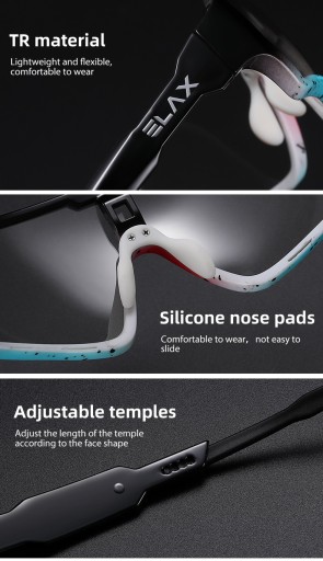 Nowoczesne sportowe okulary ELAX posiadające filtr UV400 fotochrom to kompletna ochrona przed promieniowaniem ultrafioletowym (UV) światła słonecznego , optymalny komfort użytkowania oraz nowoczesny design. Okulary idealnie sprawdzą podczas jazdy na rowerze, biegania jazdy konnej jak i w innych dyscyplinach sportowych oraz codziennym użytkowaniu.