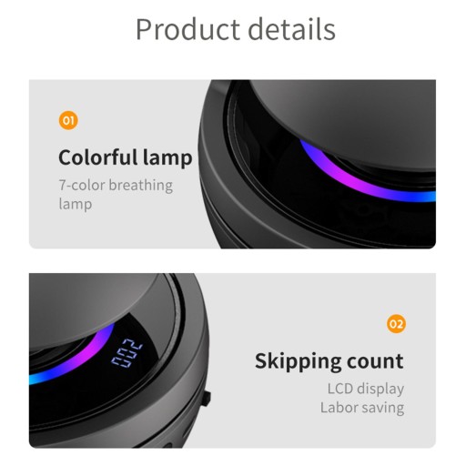 Cecha: Ta skakanka jest również wyposażona w duży wyświetlacz LED, dokładny inteligentny układ liczący do monitorowania postępów ćwiczeń, prędkość obrotową 70-160, 7 kolorowych lamp oddechowych, funkcję muzyki, możesz słuchać muzyki podczas ćwiczeń, uprzyjemniać sport . Dolna konstrukcja nośna, stabilna i nie odwrócona.