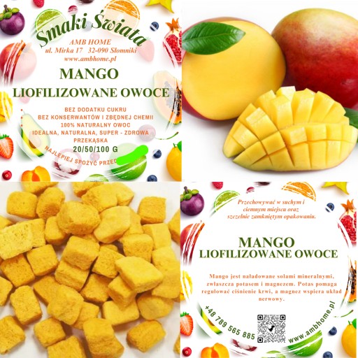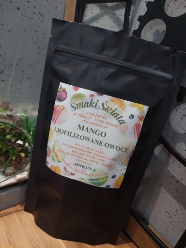- 20g, 50g, 100g Mango liofilizowane zapakowany w czarny doypack
