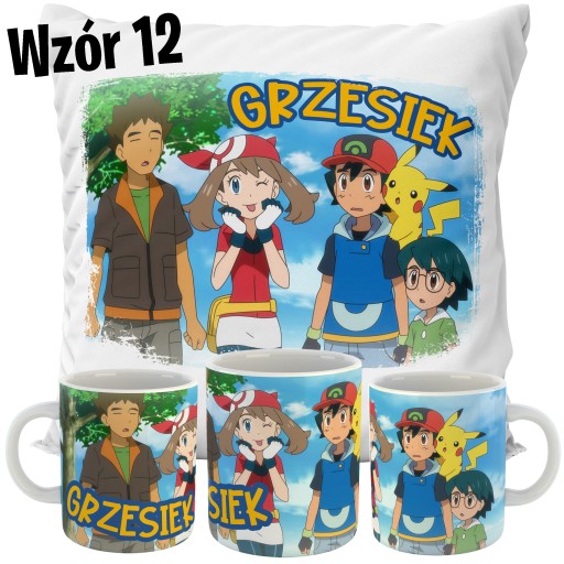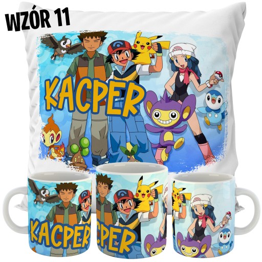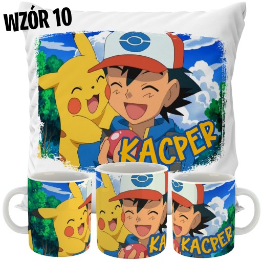 ZESTAW PODUSZKA + KUBEK POKEMON + TWOJE IMIĘ!