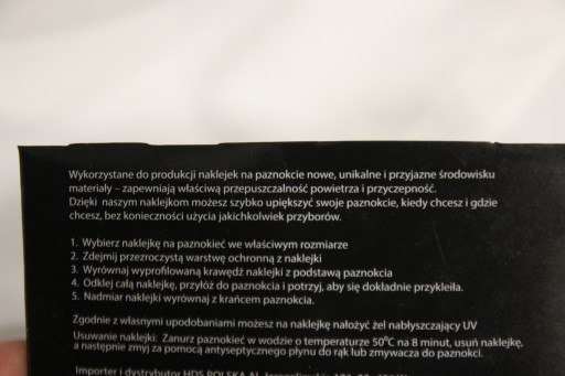 Różne rozmiary naklejek opisane rozmiarami do wyboru na który paznokieć przykleić.