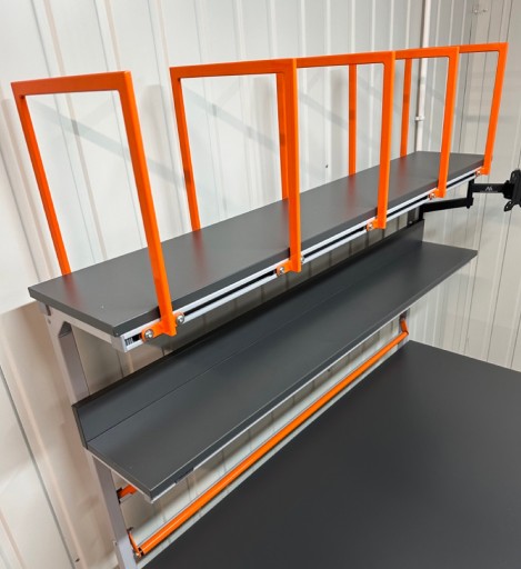 - półka na akcesoria z organizerem na kartony, możliwość regulacji szerokości pięciu poszczególnych przegród, wymiar: 140x25 cm,