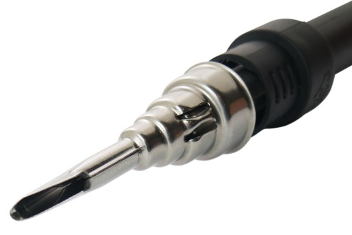 - ✔️ Dyszę bez końcówki posiada średnicę 9mm, a u dołu znajdują się otwory do wstępnego podgrzewania naprawianego plastiku.