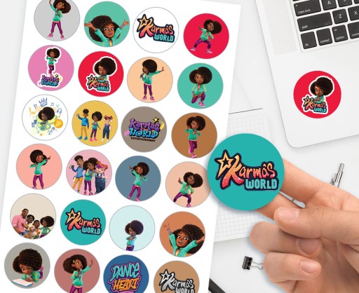 W zestawie otrzymujesz arkusz A4 zawierający aż 24 naklejki o średnicy 40mm.