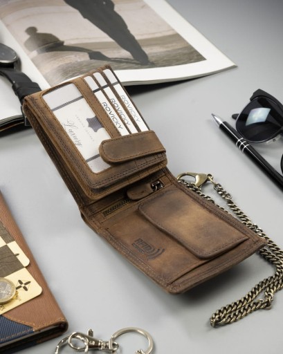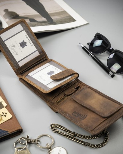 Portfel wyposażony w specjalną podszewkę z RFID BLOCKING SYSTEM (Radio-Frequency IDentification), która zabezpiecza karty zbliżeniowe, dokumenty biometryczne, legitymacje i karty komunikacji miejskiej przed nieautoryzowanym odczytem danych. Technologia uniemożliwia odczyt danych za pomocą specjalnych czytników wykorzystywanych do kradzieży danych.