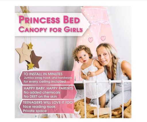 TWOJA KSIĘŻNICZKA POKOCHA TO - Ten namiot ma różnorodne wzory, które zachwycą oczy Twojej księżniczki. Dziewczęce elementy, takie jak miękki różowy materiał, koronkowe falbany i serca, mogą dodać magicznego akcentu do sypialni Twojej córeczki.
