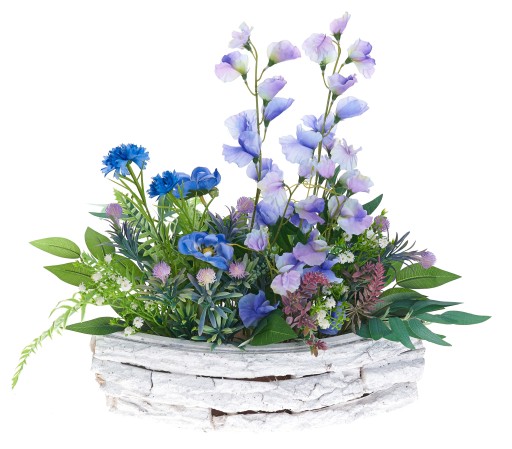 MATERIAŁ: kora (doniczka), sztuczne kwiaty