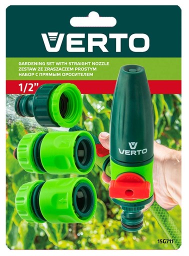 Zestaw ze zraszaczem prostym, złączkami jednomateriałowymi, przyłączem do kranu VERTO (nr ref. 15G711).