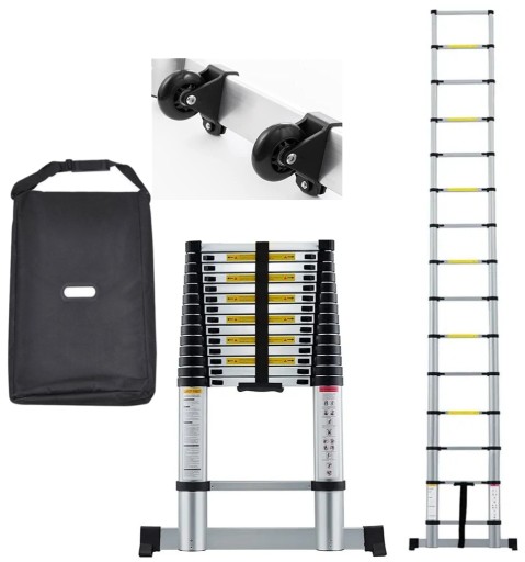 ALUMINIOWA, ROZKŁADANA, TELESKOPOWA DRABINA 4,4 m. - ROBOCZA 5,4 m. !!