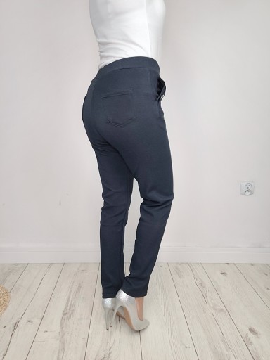 Dzięki elastycznej tkaninie spodnie są bardzo wygodne i dopasowują się do sylwetki. Posiadają kieszenie z przodu i z tyłu, szeroki pas idealnie wyszczupli sylwetkę.