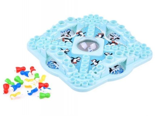 - pionki pingwinki: 4 niebieskie, 4 żółte, 4 zielone, 4 czerwone;