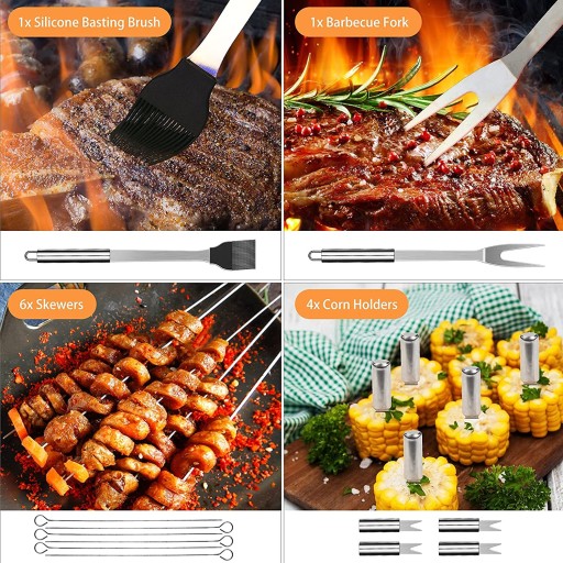 Nasz zestaw narzędzi do grillowania wykonany jest z wysokiej wytrzymałej stali nierdzewnej o profesjonalnej jakości, dzięki czemu ten zestaw akcesoriów do grilla jest trwały, nie rdzewieje ani nie pęka. Ponadto wszystkie narzędzia do grillowania nadają się do mycia w zmywarce, co zapewnia szybkie i łatwe czyszczenie.