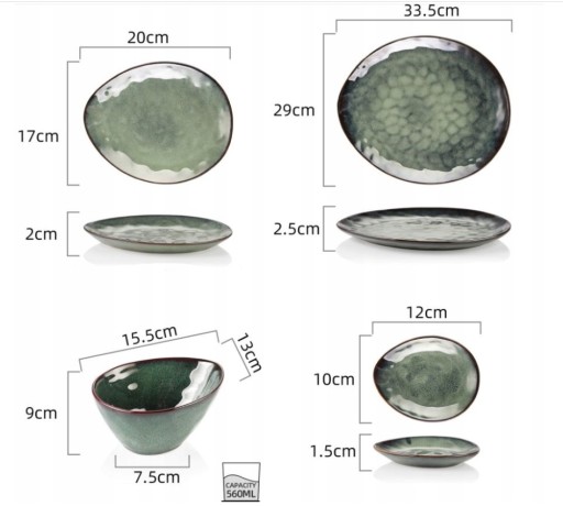 ✅ 6 talerzy deserowych o wymiarach 20cm x 17cm x 2cm.