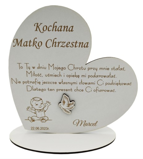 STATUETKA PODZIĘKOWANIE DLA CHRZESTNYCH Z OKAZJI Chrztu Świętego w formie pamiątkowej statuetki będzie miłą niespodzianką dla chrzestnych jak i świetną pamiątką na lata. Warto podziękować za obecność w tym wyjątkowym dniu.