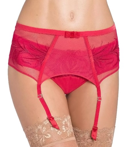 Opis: Pas do pończoch, czerwony, regulowane zapinki do pończoch, z tyłu zapinany na haftki, ozdobna koronka. Bardzo dobry gatunek.