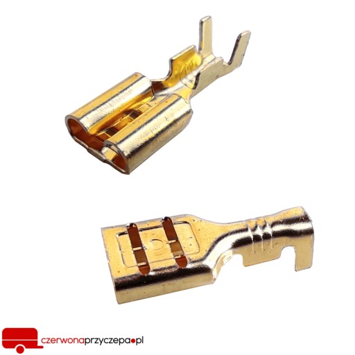 Konektor męski wykorzystywany jest jako zacisk na przewodach wielodrutowych znajdujących się w instalacjach elektrycznych, np. przyczep. Dzięki jego wykorzystaniu zapewnisz przewodom precyzyjne, bezpieczne podłączenie z całą instalacją. Idealnie pasują do konektorów żeńskich 6,3mm np. do łączenia mas w tylnych lampach zespolonych. Produkt wykonano z mosiądzu, co świadczy o jego trwałości i wysokiej odporności na uszkodzenia, dzięki czemu będziesz mógł go długotrwale użytkować.