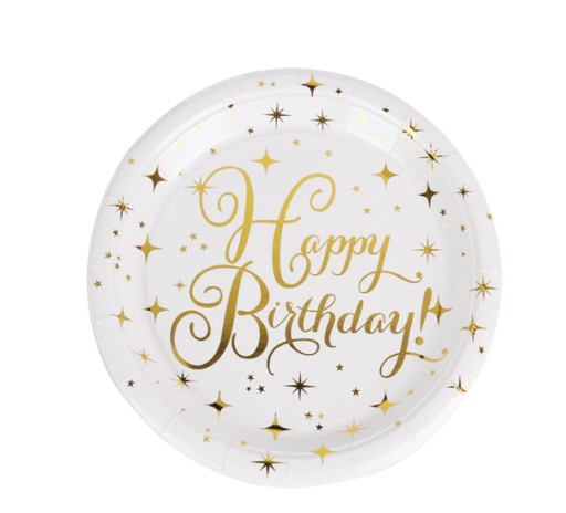 TALERZYKI papierowe w unikalnym i oryginalnym białym kolorze ze złotym nadrukiem. Idealne na każde przyjęcie czy to w plenerze czy w pomieszczeniu. W zestawie 6 talerzyków o średnicy 18 cm. Ten produkt to absolutny HIT bijący wszystkie klasyczne dekoracje jednorazowe na głowę.