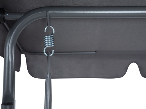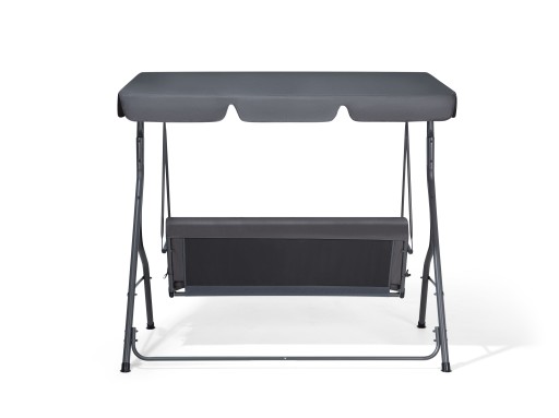 Uczyń swój ogród miejscem odpoczynku i relaksu i wzbogać go o tę stylową huśtawkę. Jej metalowa rama w połączeniu z poliestrowym zadaszeniem i siedziskiem, są łatwe w utrzymaniu. Ciemnoszary kolor nadaje meblowi nowoczesności, która z łatwością dopasuje się do dowolnego stylu ogrodu, a duże siedzisko zapewni wystarczająco dużo miejsca nawet dla 3 osób.