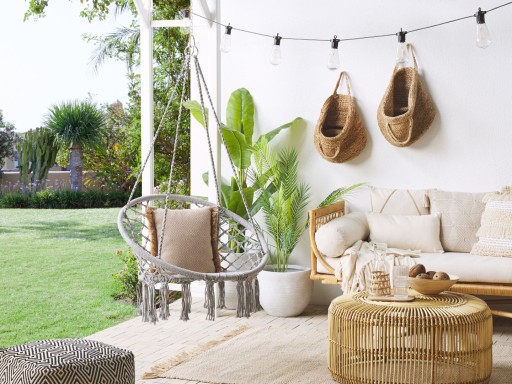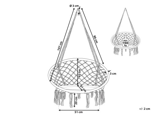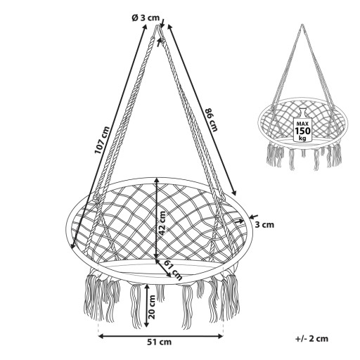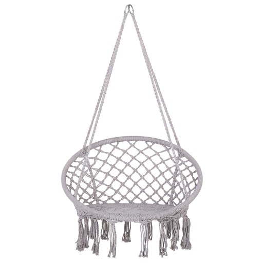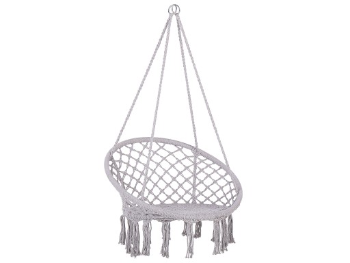 Z tym wiszącym krzesłem w mgnieniu oka wprowadzisz się w prawdziwy stan relaksu. Usiądź wygodnie i ciesz się delikatnym kołysaniem we własnej sypialni, salonie lub na balkonie. Hamak posiada mocną ramę z plecionym siedziskiem z bawełnianej makramy w stylu boho, które nada beztroski charakter każdej aranżacji pomieszczenia. Zawieś krzesło w wybranym przez siebie miejscu i stwórz wygodne miejsce do wypoczynku.